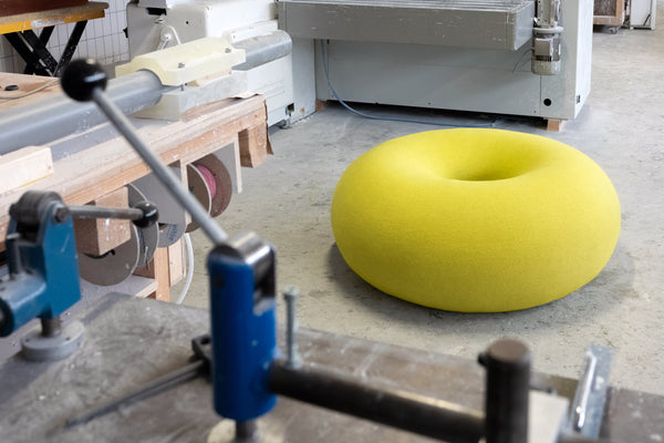 The pouf is Marcelis’s inaugural design into our collection and her first foray into soft form furniture. This donut-shaped beauty is perfectly sculptural; a bold graphic form that interrupts interior landscapes with its faultless chunky geometry, available in three vibrant upholstery options: Sulfur Yellow, Cotton Candy, and Oatmeal. Read more about our collaboration with Sabine and the driving inspirational force behind the design.