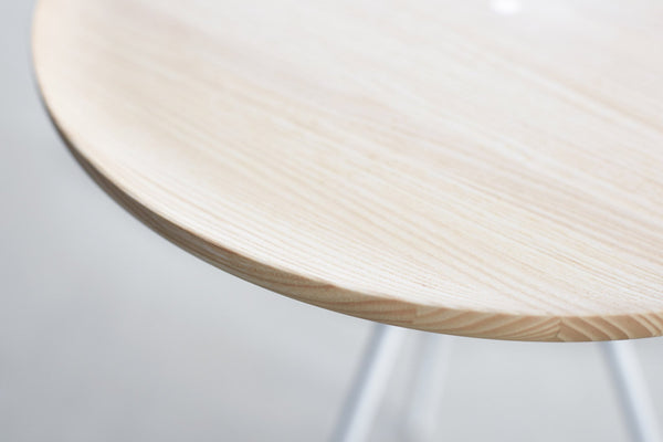 The top of the Key Table is turned solid ash or walnut. The simple pleasure of the wood grain, visible even in the black and white lacquered versions, is fundamental to this design. Delicate tripod legs support the tabletop, creating a feeling of airiness and modernity. The Key Table is both light and strong; it is shipped flat-pack and requires minimal effort for assembly (the tripod legs screw smoothly and efficiently into the top). This timeless design from studio GamFratesi suits any interior and works well alone or in a cluster.